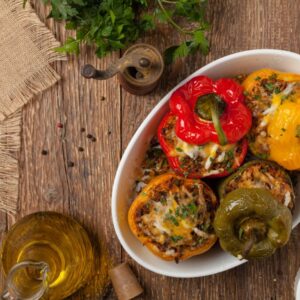Preheat Oven: Preheat your oven to 375°F (190°C). Arrange the halved bell peppers in a baking dish, cut side up.